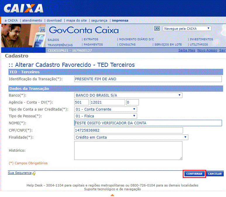 Nesta tela será possível fazer alterção de algum favorecido, apresentado na tela anterior.