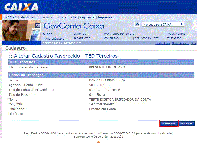 Após todas as alterações aparecerá uma tela onde você poderá verificar, se todas as alterações estão corretas.