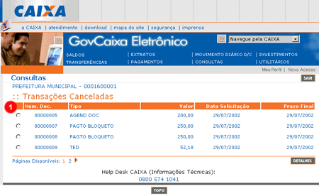 Cancelado (1). Para visualizar os detalhes da