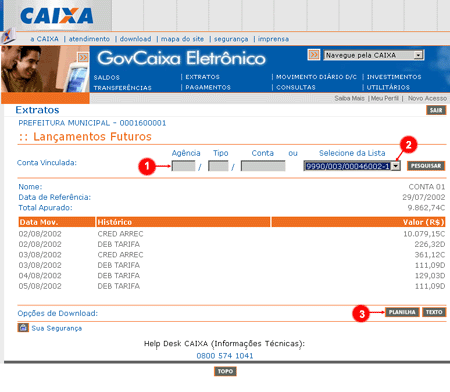 Nesta tela de Lançamentos Futuros, você também terá duas opções para fazer download dos dados,