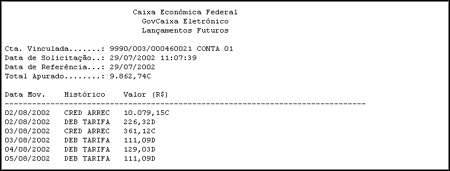 Este é um exemplo do arquivo texto formatado para download. Este tipo de download grava todos os dados exibidos na tela preservando suas formatações e alinhamentos.